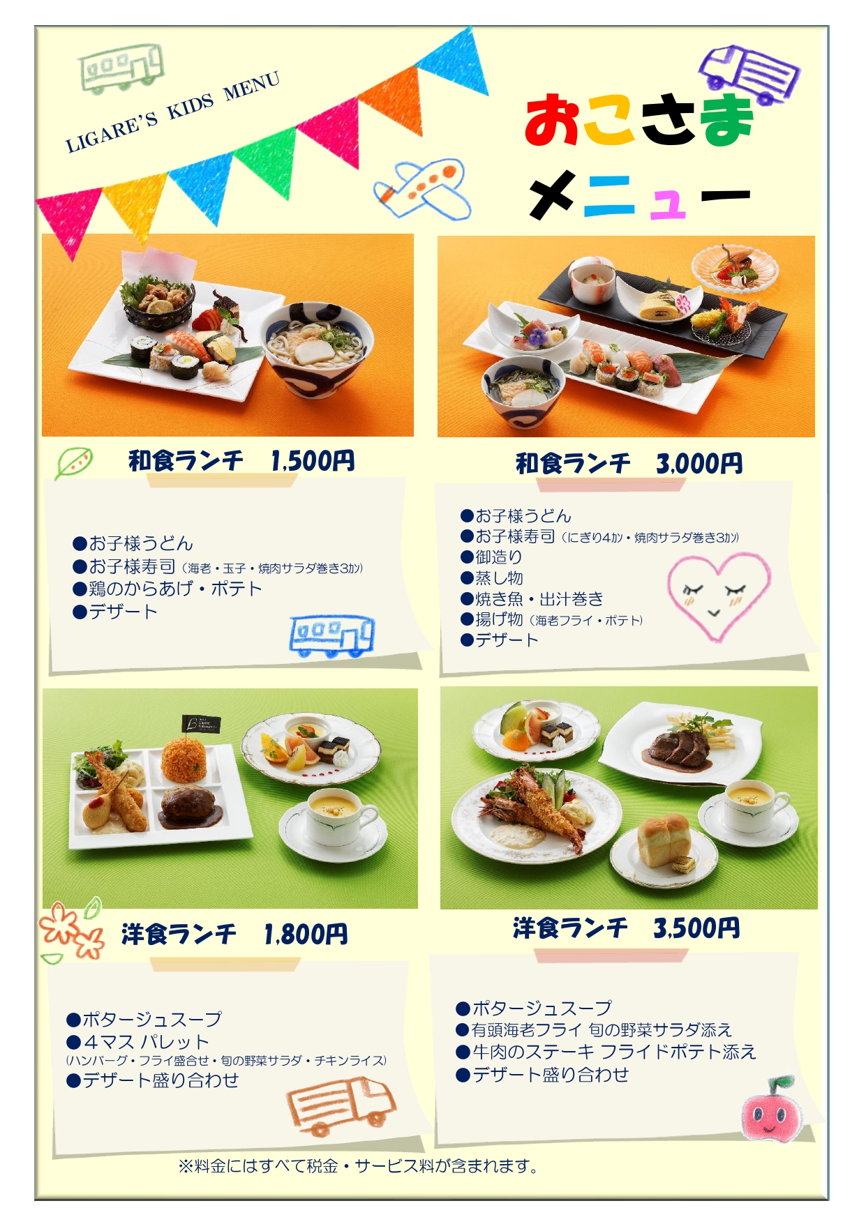 和食または洋食、ボリュームも選べる4タイプのお子様ランチをご用意しております。